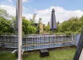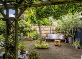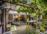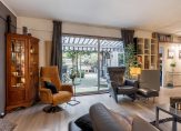 De woonkamer is heerlijk ruim en is voorzien van een houtlook plavuizenvloer met vloerverwarming. Middels een grote schuifpui is er toegang tot de zonnige achtertuin gelegen op het zuidwesten waar de hele dag kan worden genoten van de zon. De achtertuin is fraai aangelegd met een pergola en veel groen. Hierdoor heb je ook fijne schaduwplekken op een zonnige dag. Verder beschikt deze heerlijke achtertuin over een zonnescherm, een berging bestaande uit twee delen en een uitgang naar de straatzijde.