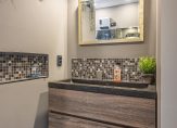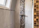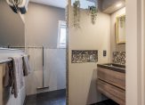 De badkamer is in 2022 vernieuwd met een fraaie betegeling en beschikt over een inloopdouche en dubbel wastafelmeubel. Op deze etage bevindt zich verder nog een apart toilet, welke ook is vernieuwd in 2022 met een wandcloset en fonteintje.
