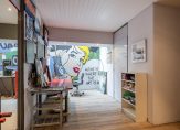 Het souterrain van dit huis heeft een schat aan mogelijkheden dankzij de ruime en veelzijdige indeling. Bij binnenkomst in het souterrain kom je in een open ruimte die nu in gebruik is als “atelier”. Vanuit deze ruimte bereik je het toilet, de wasruimte en de twee (slaap)kamers. De eerste kamer is zeer ruim heeft een wastafel, twee vaste kasten en is nu in gebruik als werkruimte met een pooltafel. Via de erker heb je een fijne lichtinval en kan er geventileerd worden.
