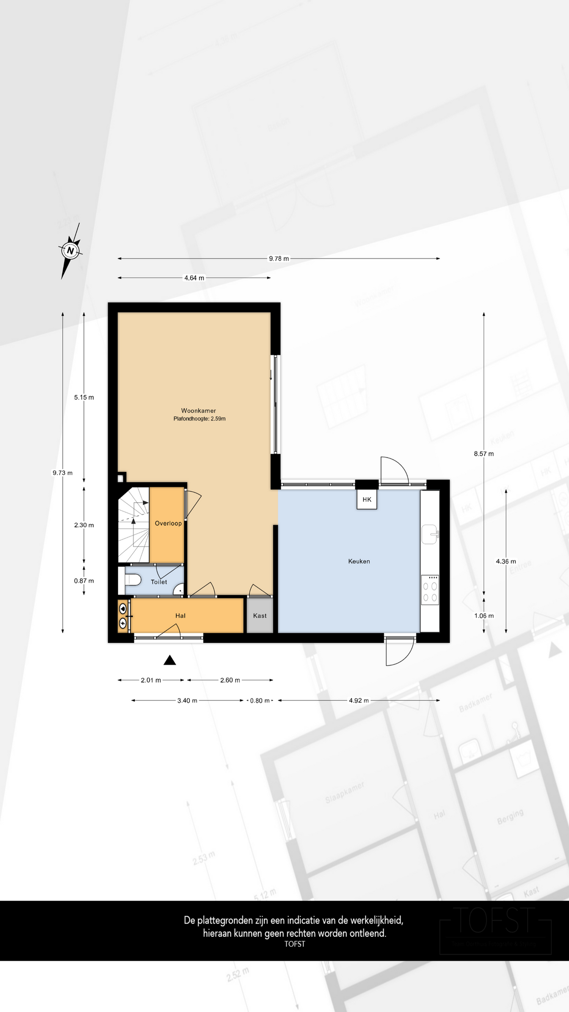 Middels de gezellig aangelegde voortuin stapt u binnen in de hal met meterkast en krijgt u toegang tot de woonkamer. Aan de rechterkant bevindt zich een handige bergkast en aan de linkerzijde is er toegang tot de overloop met het toilet en de trap naar zowel de eerste etage als het souterrain.