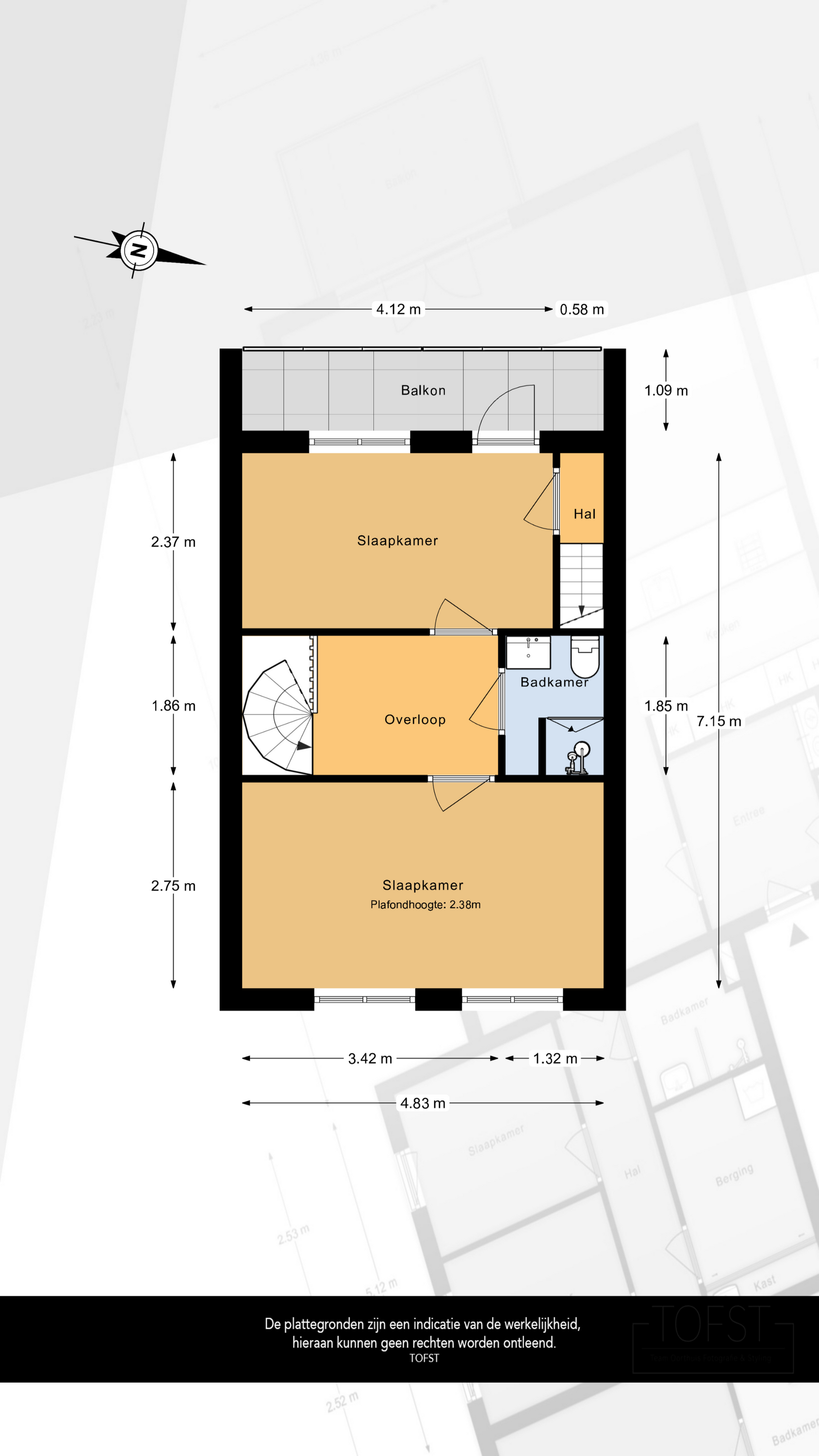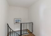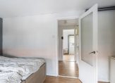 Slaapkamer 2 aan de achterzijde circa 11,4 m² voorzien van houtlook laminaatvloer en deur naar balkon op het westen van circa 5 m². Hier is de trap naar de tweede verdieping.