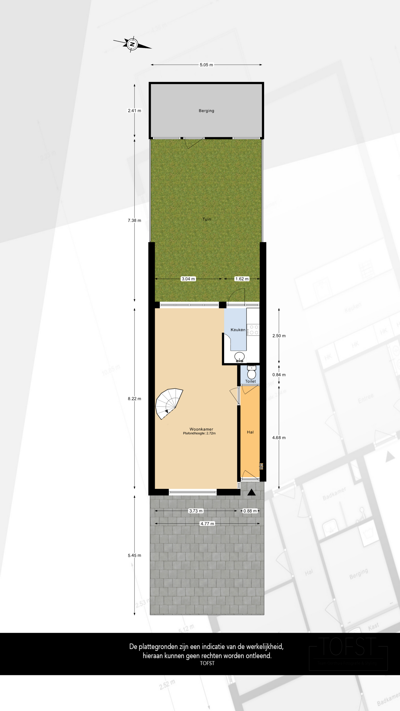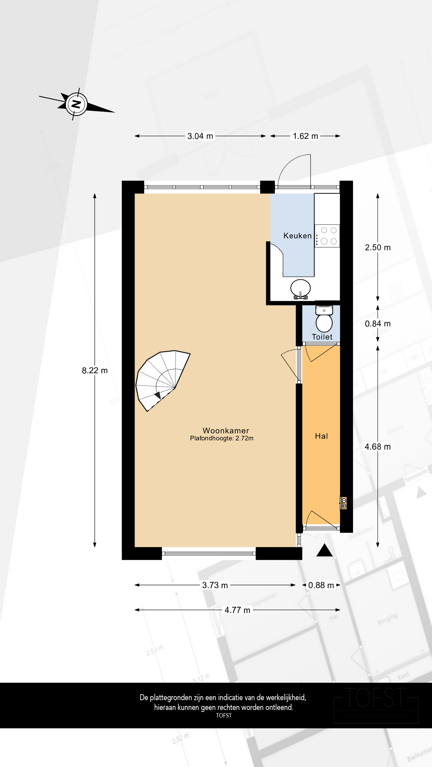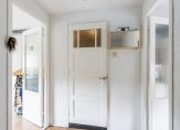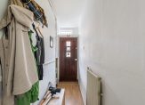 Entree woning onder luifel, gang/hal met garderoberuimte en toilet.