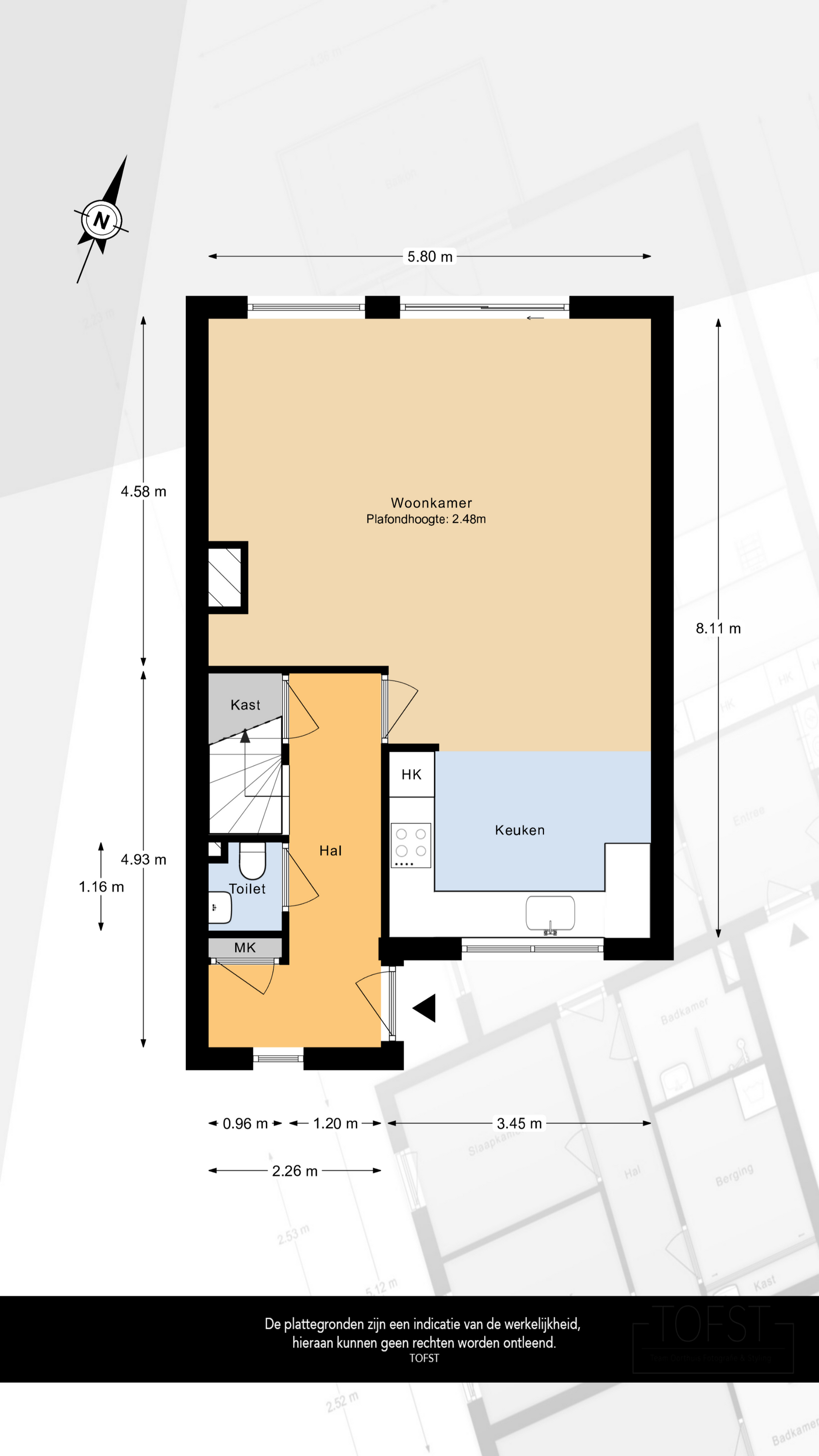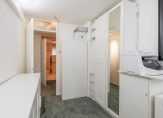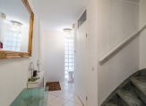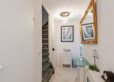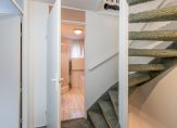 Entree woning, hal voorzien van garderoberuimte, meterkast, een keurig toilet met wastafelmeubeltje, betegeld tot het plafond, een trapkast voor voldoende bergruimte en een trap naar de eerste verdieping.