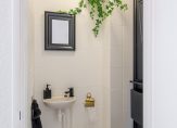 – Complete badkamer met een douchecabine, ligbad, tweede toilet en wastafelmeubel;