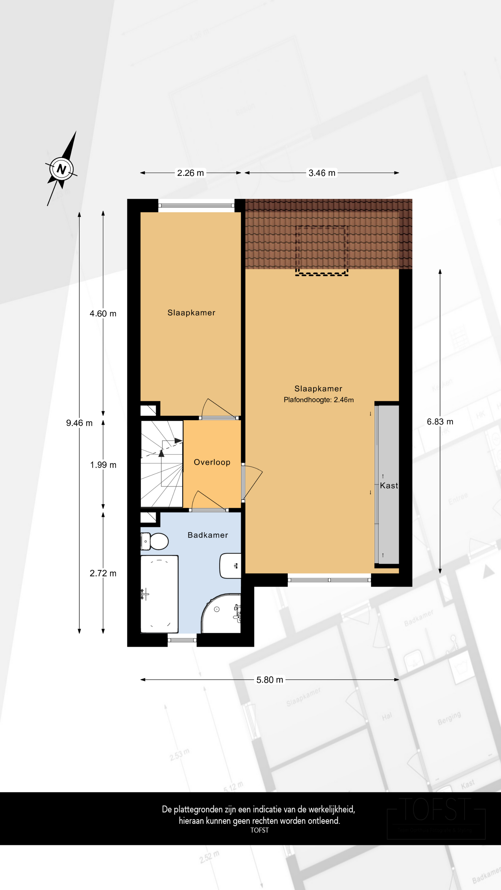 Slaapkamer 2 aan de achterzijde circa 10 m².