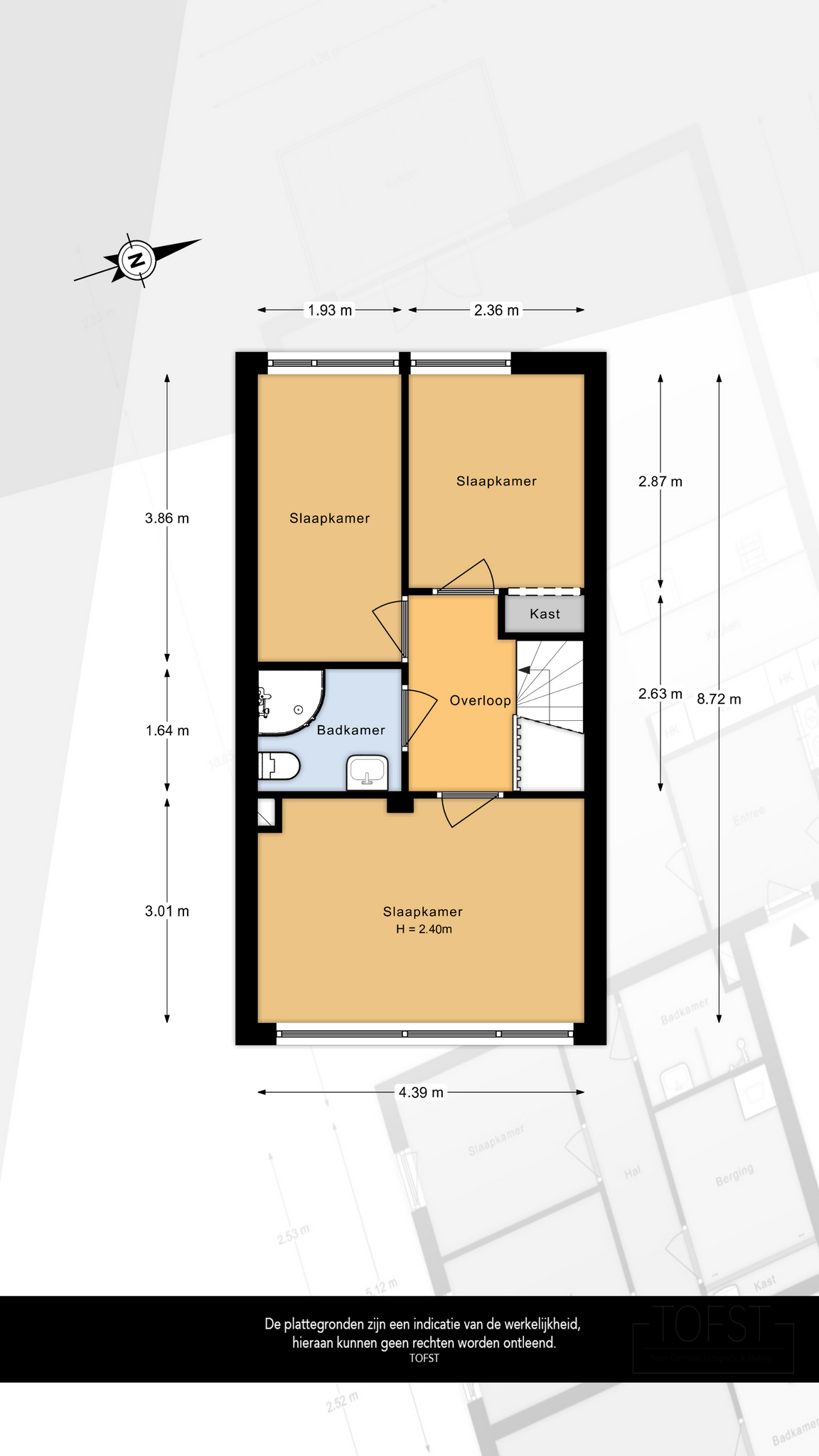Slaapkamers 2 en 3 zijn aan de achterzijde van de woning gelegen en beschikken over een respectievelijk oppervlakte van