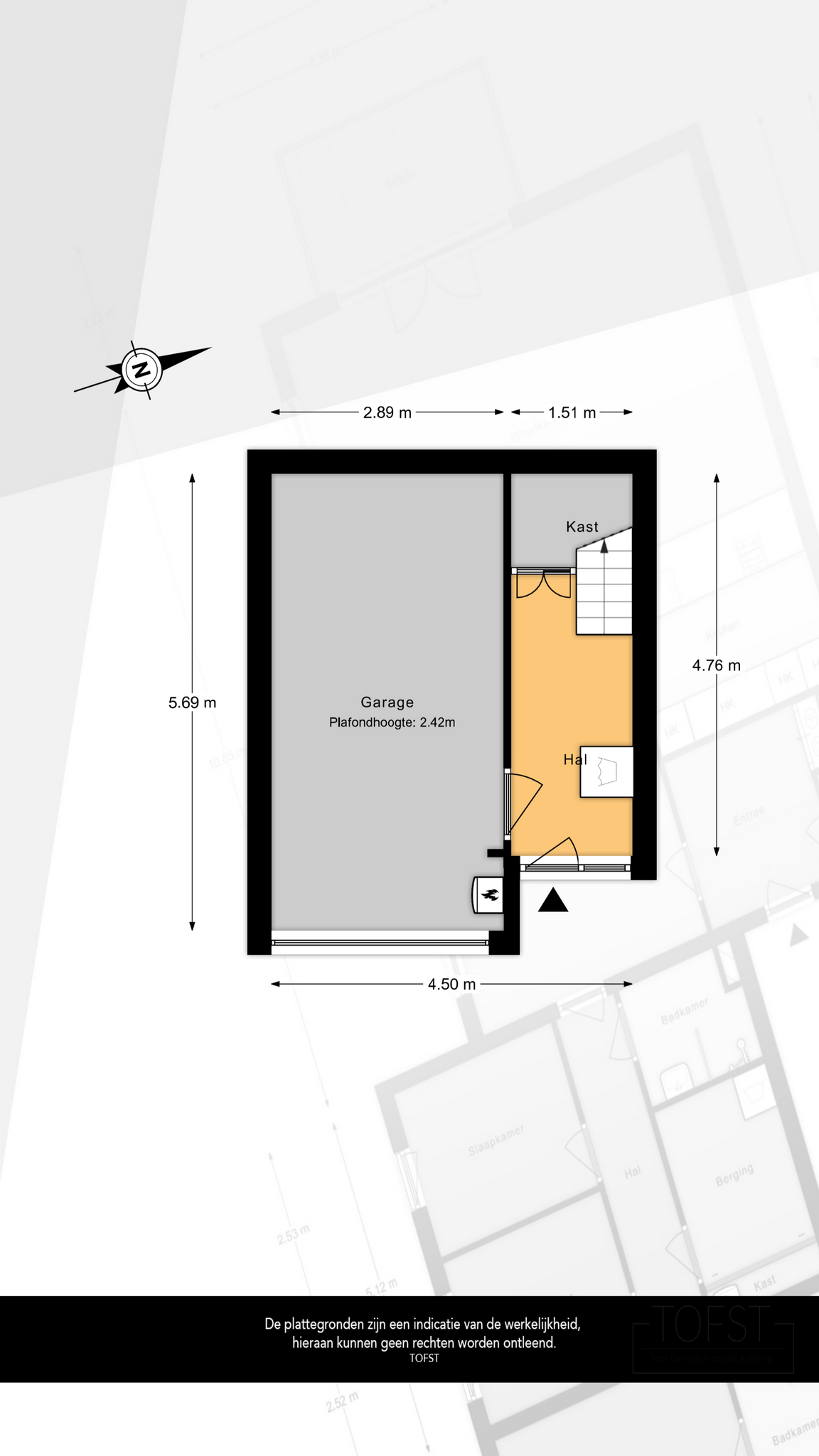 De centrale ontvangsthal van de woning is voorzien van de aansluitingen voor de wasmachine en droger, een vaste kast onder de trap en middels de loopdeur is ook inpandig de toegang tot de garage verstrekt. De garage heeft een oppervlakte van circa 16 m² en is voorzien van een elektrische deur, water en de cv ketel is hier opgesteld.