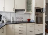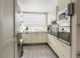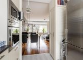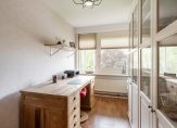 De L-vormige open keukenopstelling is aan de voorzijde van de woning gelegen en beschikt onder andere over een vaatwasser, inductiekookplaat met afzuigschouw, oven, magnetron en veel kastruimte. Doordat u de laatste op de galerij bent beschikt u ook aan de voorzijde over veel privacy.