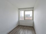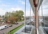 Via een tussendeur bereikt u de lichte woonkamer van circa 24 m², voorzien van een moderne laminaatvloer en toegang tot het balkon van circa 7 m². Het balkon ligt heerlijk op het westen, zodat u hier de hele dag – en zeker in de middag en avond – van de zon kunt genieten met vrij uitzicht.