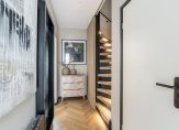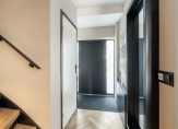 Entree woning onder een ideale luifel met bergruimte, zeer fraaie ontvangsthal met garderoberuimte, meterkast, toilet en met eiken houten treden beklede trap voorzien van verlichting en trapkast.