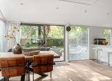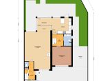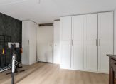 Door de uitbouw is een separate verblijfsruimte ontstaan met een tussenhal, grote slaapkamer, tweede badkamer en trap naar de verdieping met extra slaapkamer.