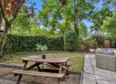 – zonnige achter- en zijtuin (150 m²) met terras, berging en achterom;