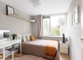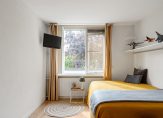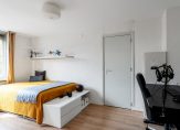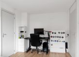 Slaapkamer 1 van circa 16 m² is afgewerkt met een moderne houtlook laminaatvloer. Deze ruimte is ook geschikt als werk- of speelkamer.
