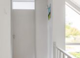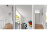 Eerste verdieping: overloop met vide en toegang tot alle vertrekken. Alle slaapkamers zijn voorzien van een moderne houtlook laminaatvloer met hoge plinten en strak stucwerk.