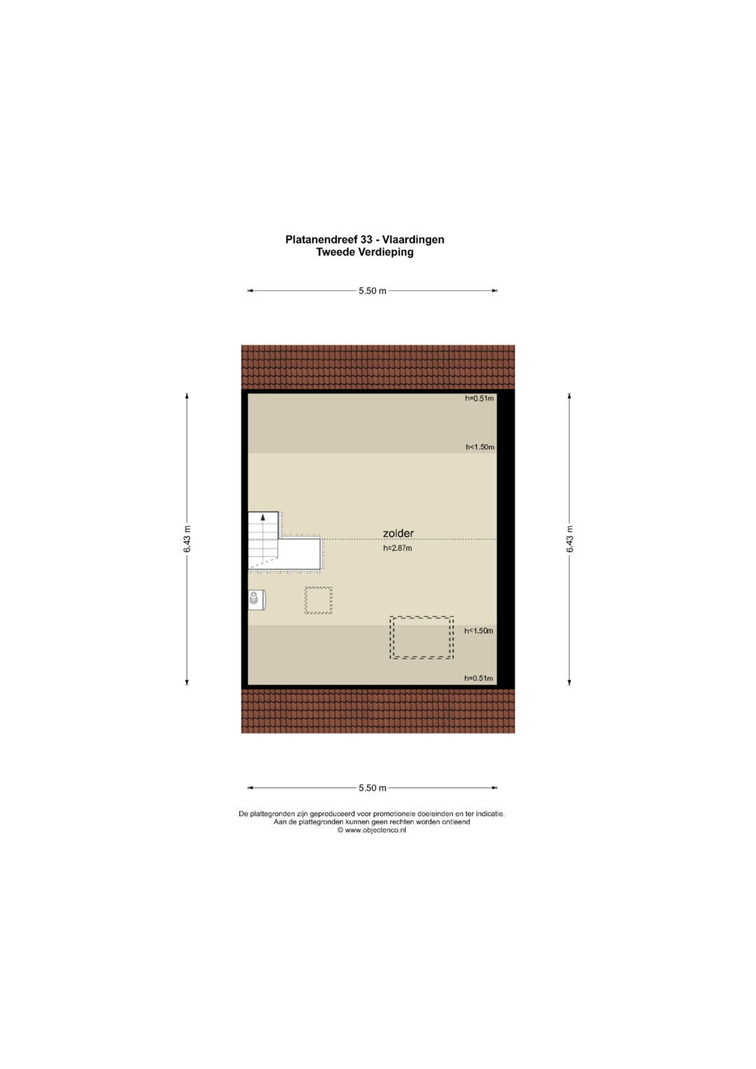 Tweede verdieping: open zolderruimte van circa 18 m² met opstelling cv-combiketel en dakraam. Deze ruimte kan, met de toevoeging van een extra dakraam of dakkapel, eenvoudig worden verdeeld in twee slaapkamers.