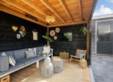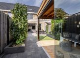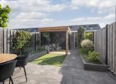 – Heerlijke onderhoudsarme achtertuin met overkapping, berging en achterom;