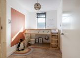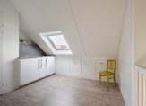 Werk cq. waskamer voorzijde (met mogelijkheid hier een 5e slaapkamer te realiseren) circa 12 m² voorzien van dakraam en kast met opstelling cv-combiketel en wasmachine/droger aansluiting.