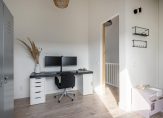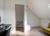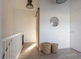Ook deze verdieping is voorzien van moderne houtlook laminaatvloer met hoge plinten en strakke wand afwerking.