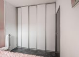 Aan de voorzijde van de woning bevindt zich de grootste slaapkamer, voorzien van een laminaatvloer en een vaste kastenwand.