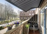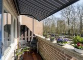 Middels de loopdeur in de woonkamer wordt de toegang verstrekt tot het heerlijke balkon. Het balkon van 6 m² met houten vlonderdelen, is gelegen op het zonnige zuidoosten, waardoor u de hele dag kunt genieten van de zon- en schaduwplekken door de aanwezigheid van een elektrisch zonnescherm.