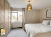 De zeer royale slaapkamer is 14 m² met voldoende plek voor een grote kledingkast.