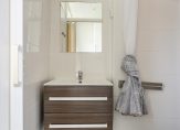 – Moderne badkamer met inloopdouche en wastafelmeubel;