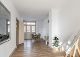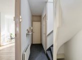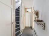 Entree portiek met trap naar entree woning op de 1e verdieping, gang/hal met meterkast en trapopgang naar woonverdieping.