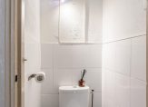Overloop voorzien van keurig toilet met antraciet/witte betegeling en inpandige berging.