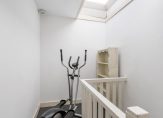Overloop met daklicht en toegang tot slaapkamer en badkamer.