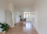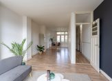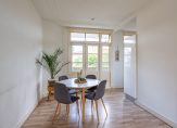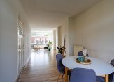 Doorzon woonkamer met eetkamer totaal circa 36 m² voorzien van houtlook laminaatvloer met hoge plinten en vaste kast. Hier is het eenvoudig een 2e slaapkamer te realiseren.