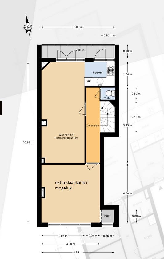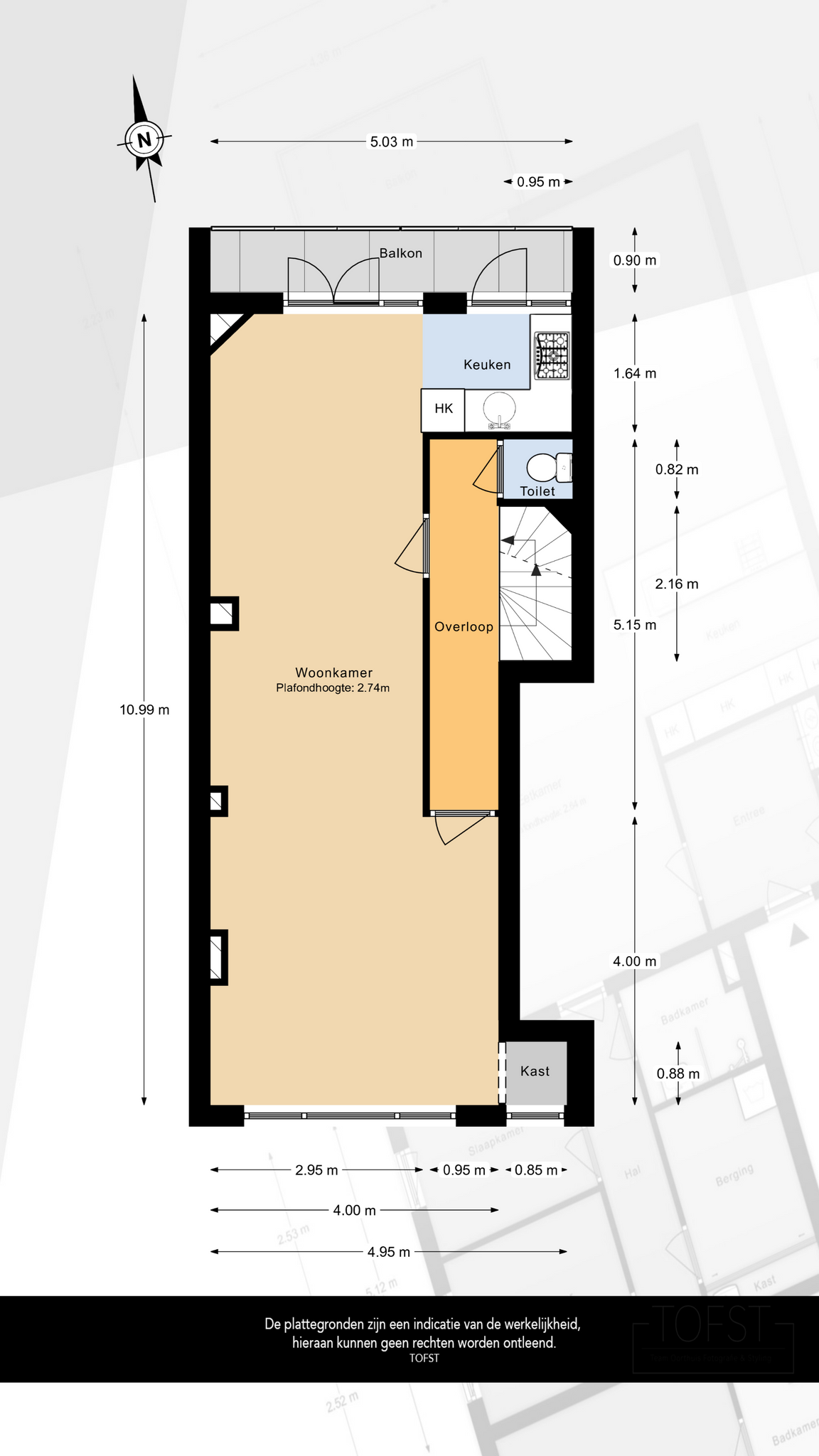 Middels uw eigen voordeur heeft u vanuit de centrale hal toegang tot de zonnige woonkamer met open keuken en fijn balkon. Op deze en de volgende etage kunt u eenvoudig een 2e en 3e slaapkamer realiseren.
