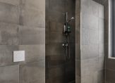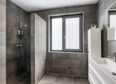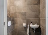 De geheel betegelde badkamer is zeer ruim en voorzien van een inloopdouche, een dubbel wastafelmeubel met verlichtbaren spiegel, een tweede hangend closet en een designradiator. Daarnaast beschikt deze ruimte over mechanische ventilatie, maar er is ook een raam voor natuurlijke ventilatie.