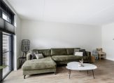 De woonkamer is tuingericht en vanuit de bouw met 2.40 meter uitgebouwd voor extra woonruimte. Door de grote hoeveelheid raampartijen beschikt de woning over veel natuurlijk lichtinval.