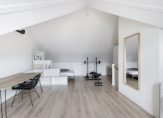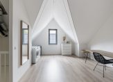 Op de zolderverdieping is door de speelse dwarskap een heerlijke vierde slaapkamer gerealiseerd, met de mogelijkheid tot het realiseren van een vijfde slaapkamer. De slaapkamer is eveneens voorzien van een moderne vloerafwerking en beschikt over veel opbergruimte achter de schotten.