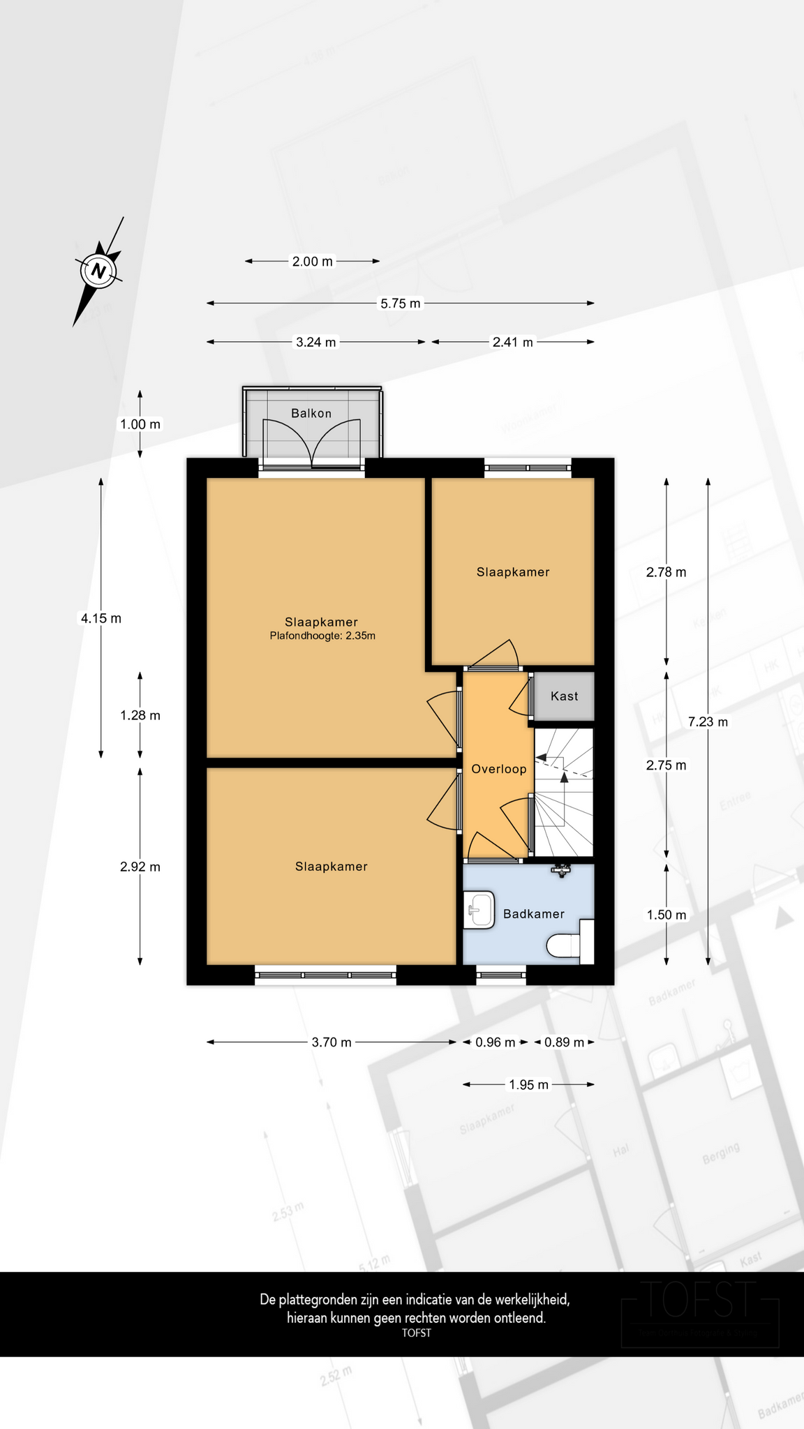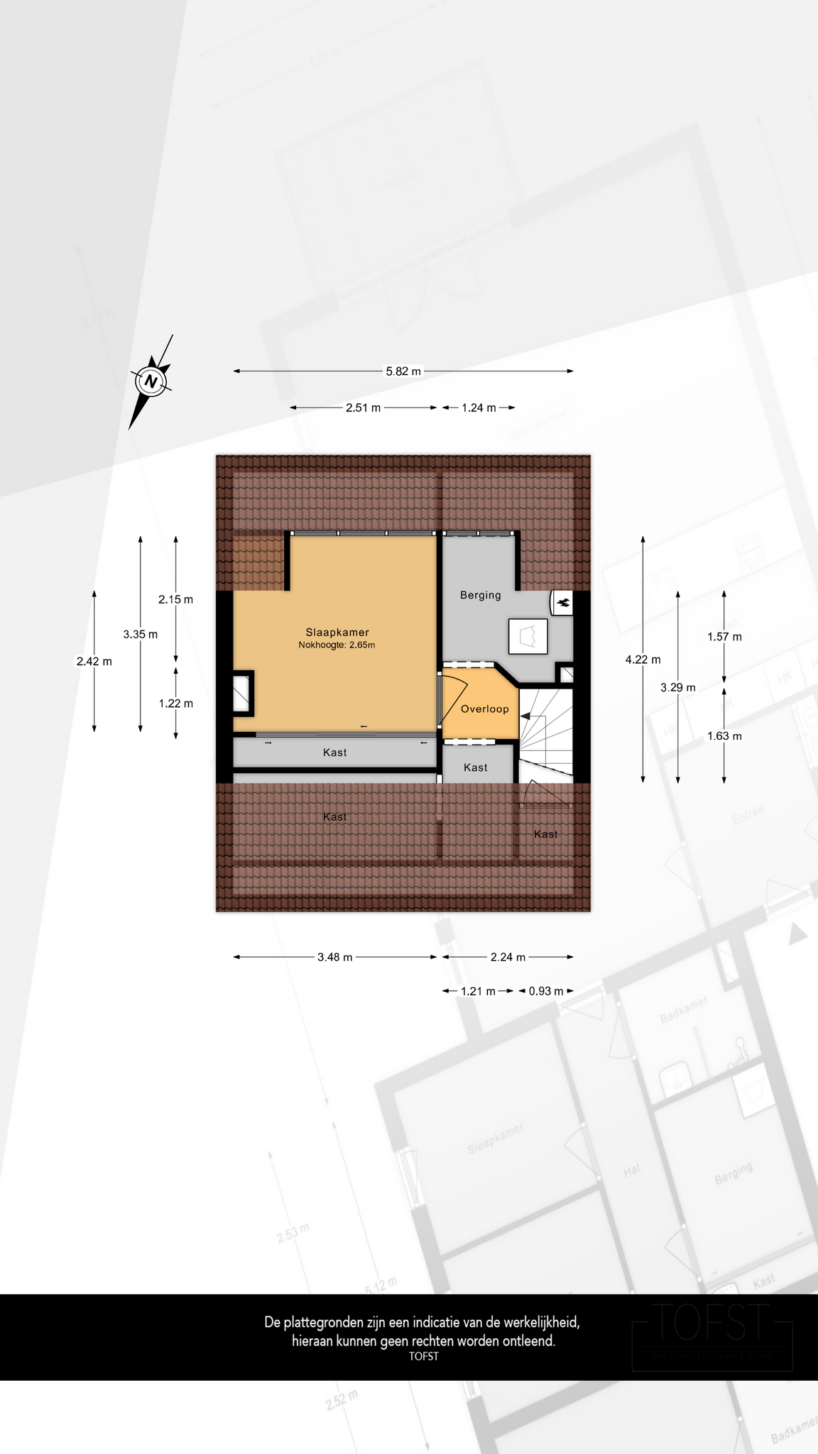 Op de overloop vindt u een vaste kast en de trap naar de tweede verdieping.