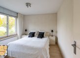 Slaapkamer 1 circa 11 m² ligt aan de voorzijde en is voorzien van een houtlook laminaatvloer en een stucwerk plafond.