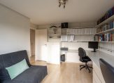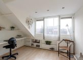 Slaapkamer 4 circa 13 m² is een comfortabele ruimte met dakkapel, laminaatvloer en handige inbouwkasten voor extra opbergruimte.