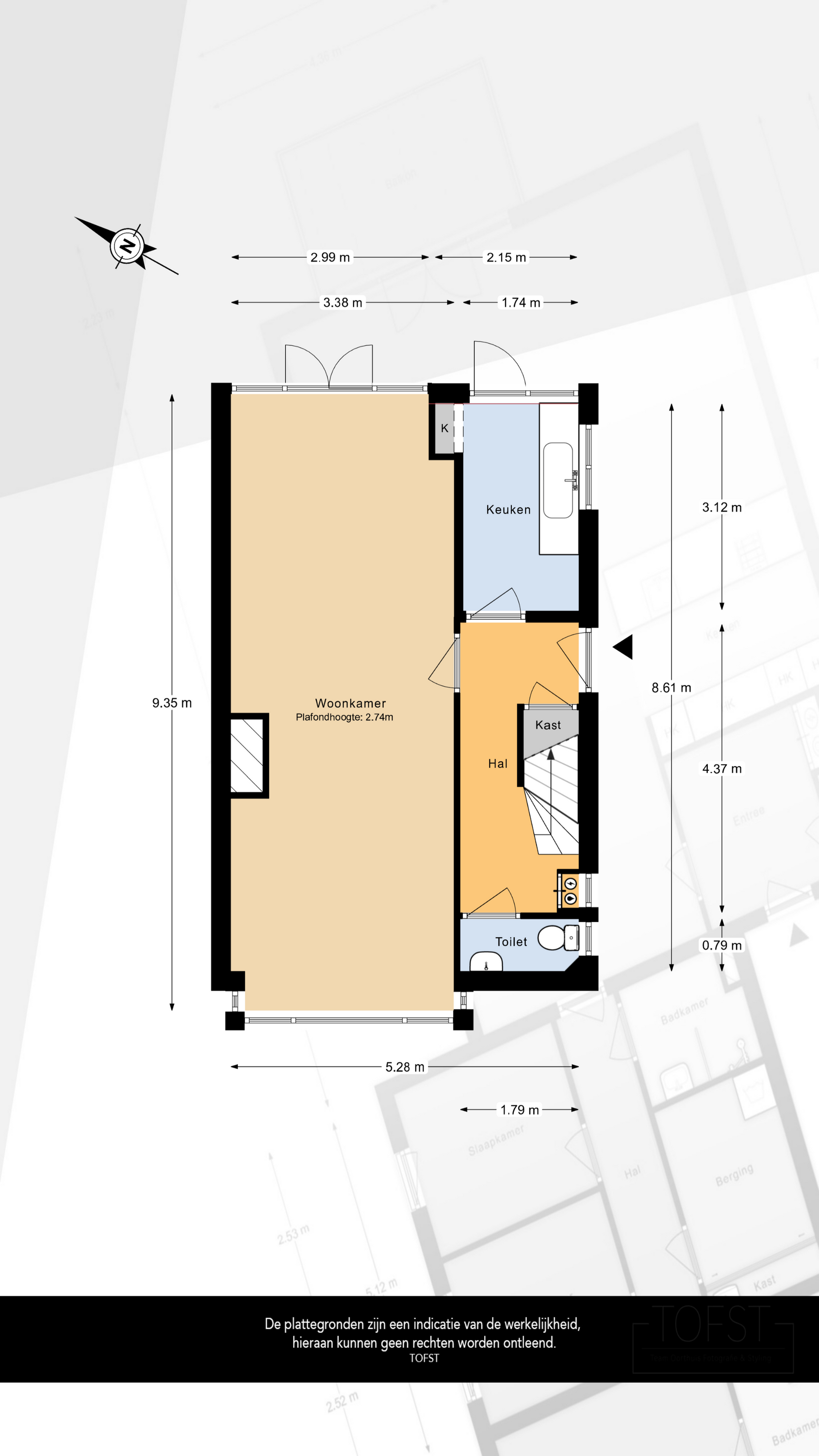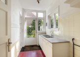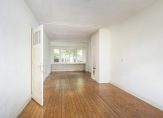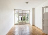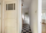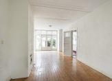 Heerlijk ruime woonkamer circa 31 m² met aan de voorzijde voorzien van een erker en aan de achterzijde de openslaande deuren voor toegang tot de achtertuin. De begane grond is verder keurig afgewerkt met houten vloerafwerking en origineel stucwerk plafond.