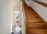 Overloop met 2 voorheen 3 slaapkamers, trap naar tweede verdieping en toegang tot alle verstrekken.