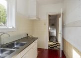 Keuken aan de zijgevel circa 5 m², met zijramen en loopdeur voor toegang tot de achtertuin.