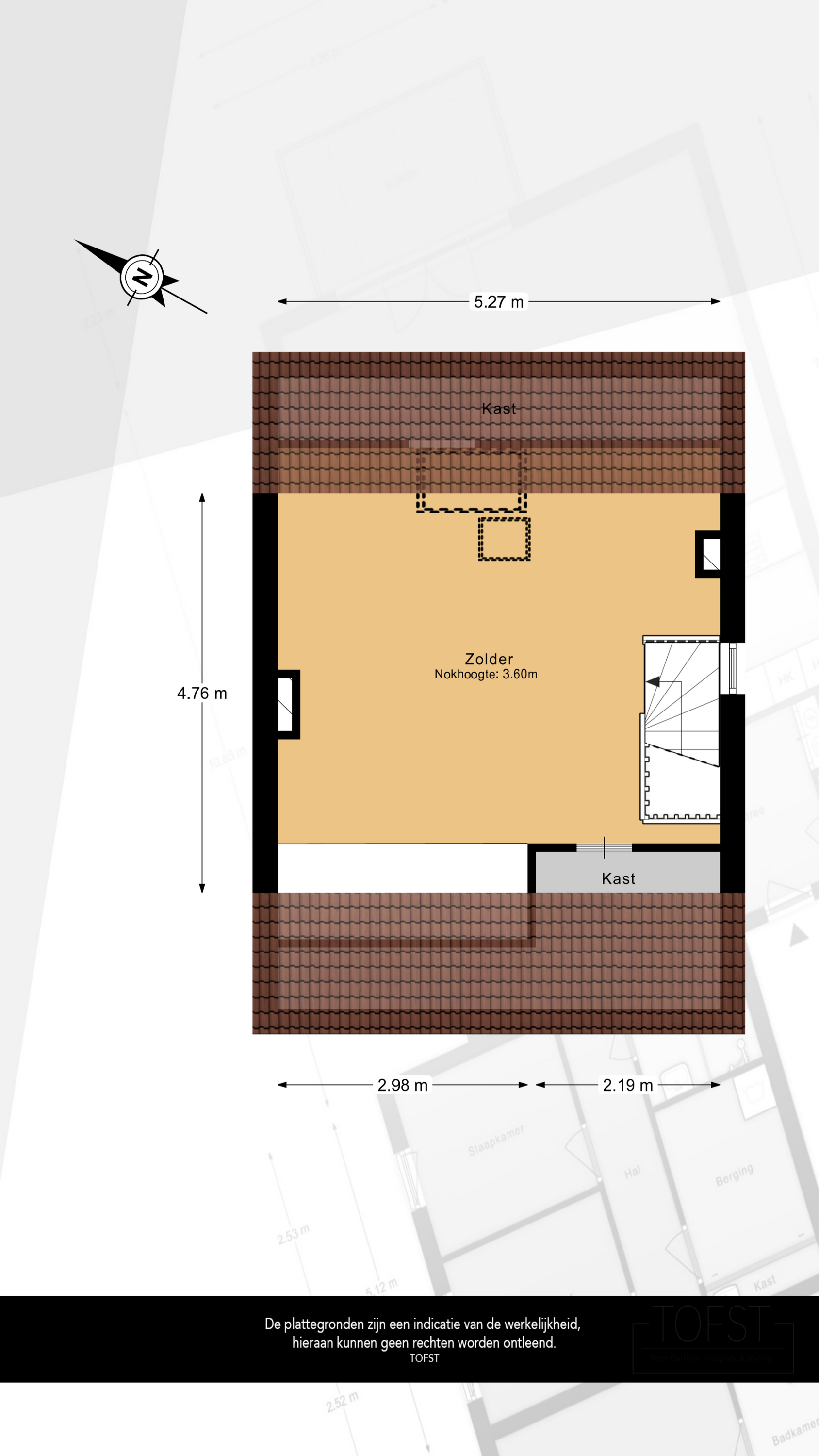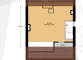 Open zolderruimte circa 25 m² voorzien van dakramen, zijraam en bergruimte.