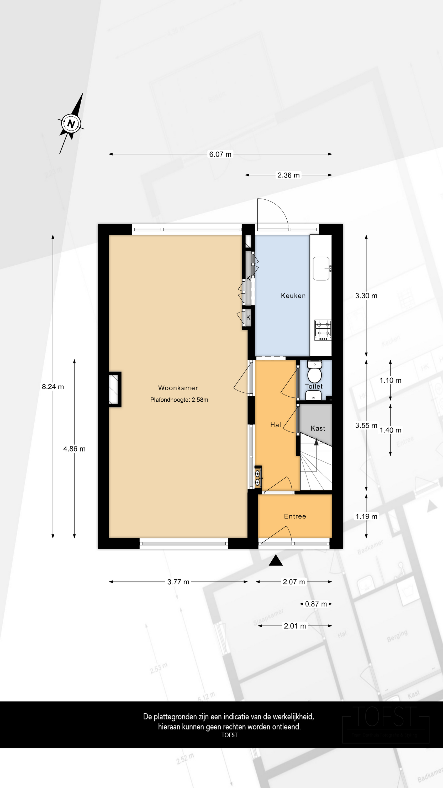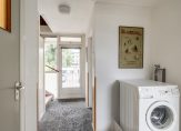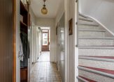 Entree woning, tocht hal, gang met meterkast,trapkast en garderoberuimte, voorzien van trap naar eerste verdieping en toilet.
