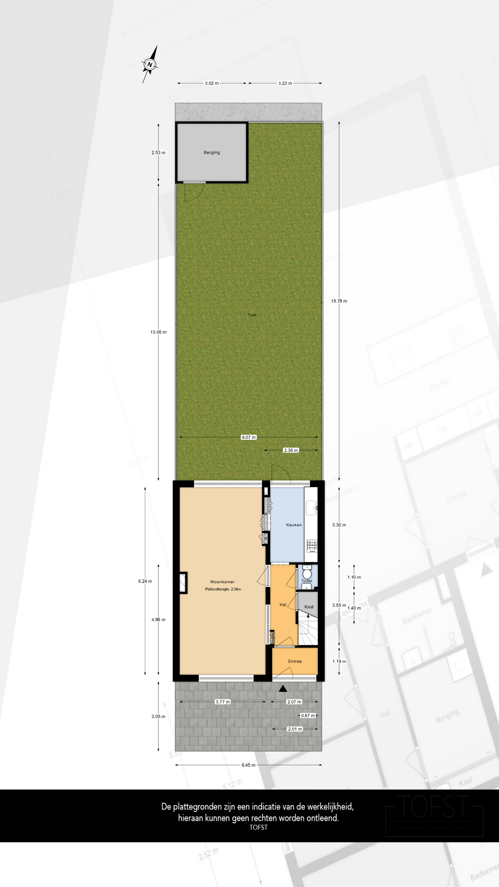 – Bijna 16 meter diepe achtertuin met berging en achterom;