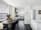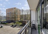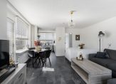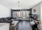 De lichte woonkamer is door de hoekligging extra licht en is voorzien van een moderne laminaat en strakke wanden. Vanuit de woonkamer wordt de toegang verstrekt naar het zonnige balkon aan de achterzijde en het extra zijbalkon.