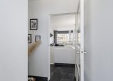 Vanuit de centrale hal van de woning heeft u toegang tot de keurig betegelde toiletruimte voorzien van een hangend closet en raampje en de woonkamer.