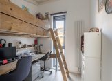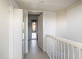 Via de overloop met veel daglicht en dezelfde pvc vloer als op de eerste verdieping bereiken we de werk/waskamer met de opstelling van de CV ketel en de aansluiting voor de wasmachine en de overige twee slaapkamers. Via de ene slaapkamer bereik je de andere kamer. Het is natuurlijk ook mogelijk hier weer 1 grote slaapkamer van te maken. Via de overloop is ook de vliering te bereiken met zeer veel bergruimte!