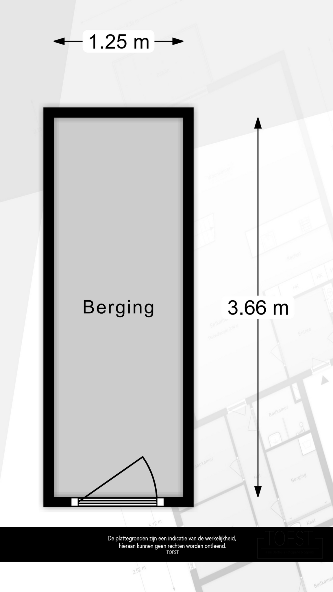 Bergingbox 5 m² in de onderbouw, voorzien van elektra;
