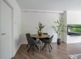 Vanuit de centrale hal heeft u allereerst toegang tot de zonnige woonkamer van circa 24 m² aan de achterzijde van de woning, welke is voorzien van een moderne laminaatvloer met hoge plintafwerking, strakke wanden en een strak plafond.