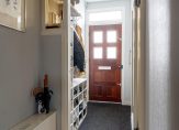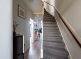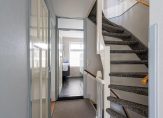Entree met luifel en in heel fraai granito uitgevoerde stoep (origineel) naar tochthal met garderoberuimte en meterkast. In de gang een toilet, trapkast en trap naar eerste verdieping.