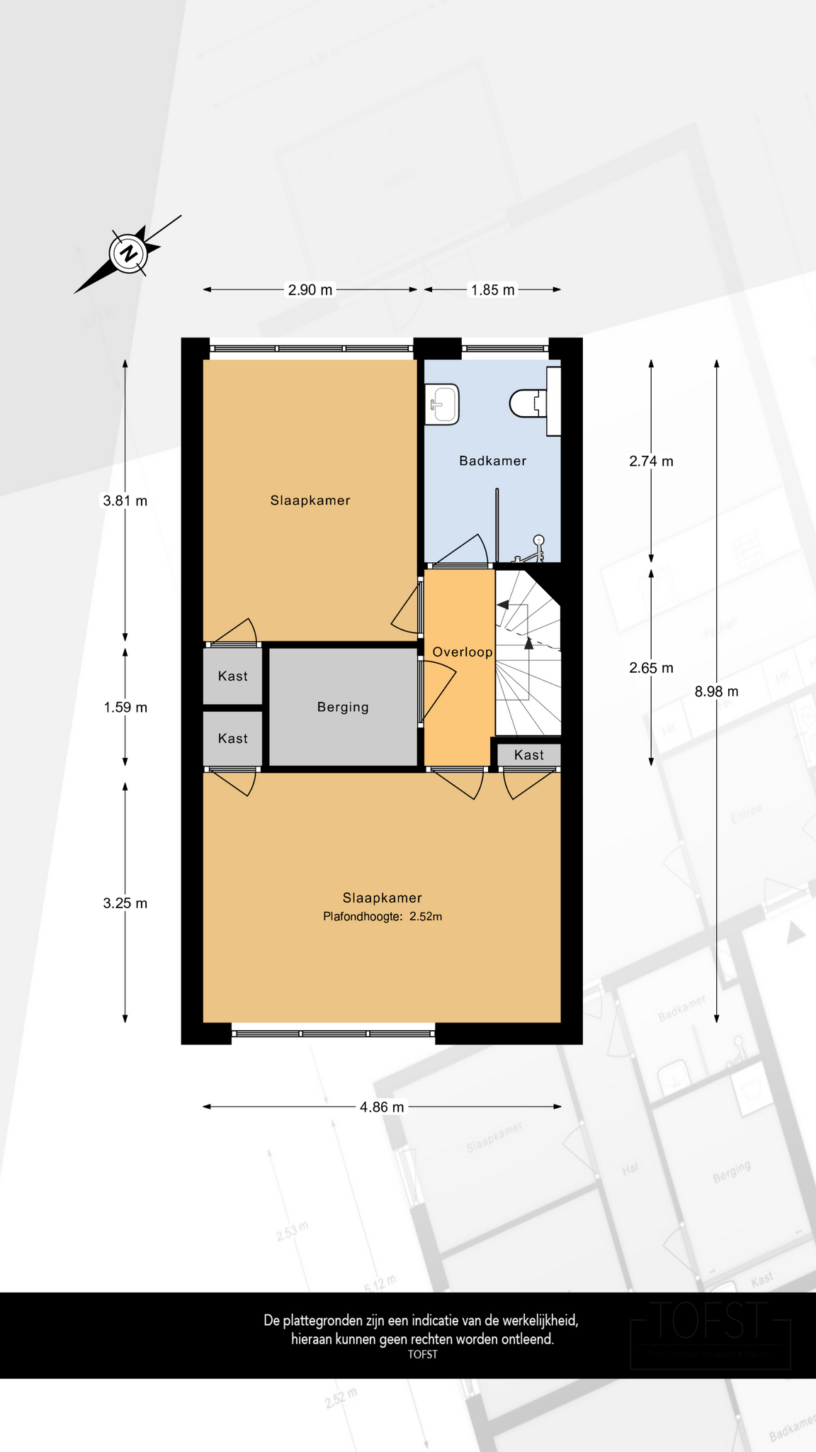 Overloop met inpandige berging van circa 3 m² en toegang tot 2 ruime slaapkamers en badkamer.